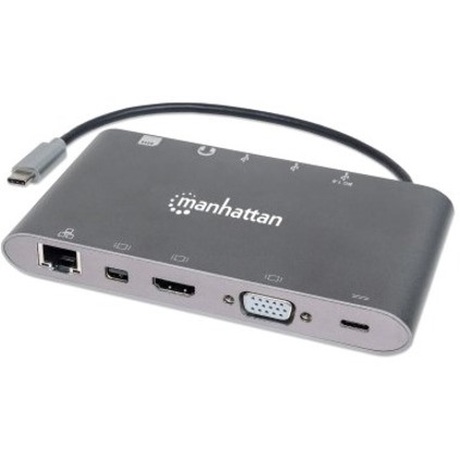 USB-C Dock/Hub with Card Reader, Ports (x8): USB-C to HDMI, Audio 3.5mm, Ethernet, Mini DisplayPort, USB-A (x3) and USB-C, With Power Delivery (60W) to USB-C Port (Note add USB-C wall charger and USB-C cable needed), All Ports can be used at the same time